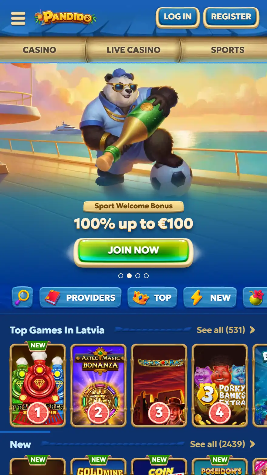 Pandido totalizators piedāvā likmes uz vairāk nekā 50,000 notikumiem gadā – futbols, teniss, hokejs, basketbols, e-sports un virtuālais sports. Pandido izceļas ar konkurētspējīgiem koeficientiem gan pirmsmaču, gan live likmēm. Statistikas rīki palīdz pieņemt pārdomātākus lēmumus pirms likmes. Viss notiek vienā kontā kopā ar kazino sadaļu – nav nepieciešama atkārtota reģistrācija. VIP programma attiecas arī uz sporta likmēm, tāpēc aktīvi spēlētāji var gūt papildu labumu. Pandido ir vērts apskatīt tiem, kas meklē pilnvērtīgu sporta likmju pieredzi latvijā.