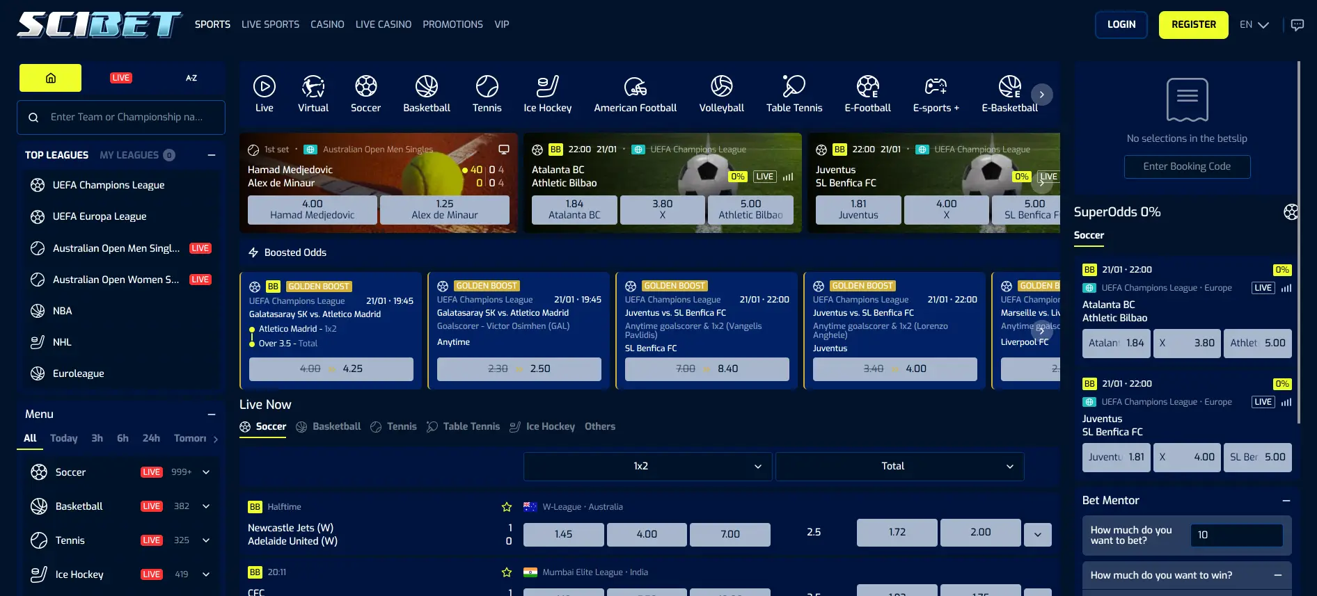 SciBet создано с упором на удобство и быструю работу. Здесь представлены основные виды спорта с возможностью делать ставки как до начала матчей, так и во время их проведения. Купон ставок наглядный, а изменения коэффициентов хорошо заметны. Платформа корректно работает и в мобильной версии, что важно для активных игроков. SciBet подойдёт тем, кто ищет практичную среду для спортивных ставок без излишне сложных функций.